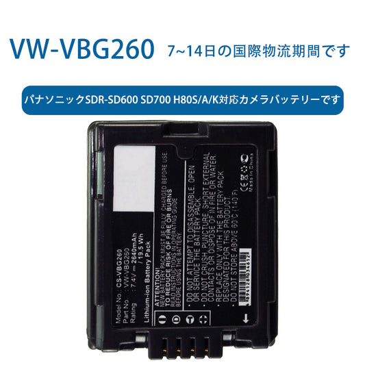 Panasonic SDR-SD600 SD700 H80S/A/K compatible camera battery for VW-VBG260 7.4V 2640mAh Li-ion battery TLALOC ENERGY