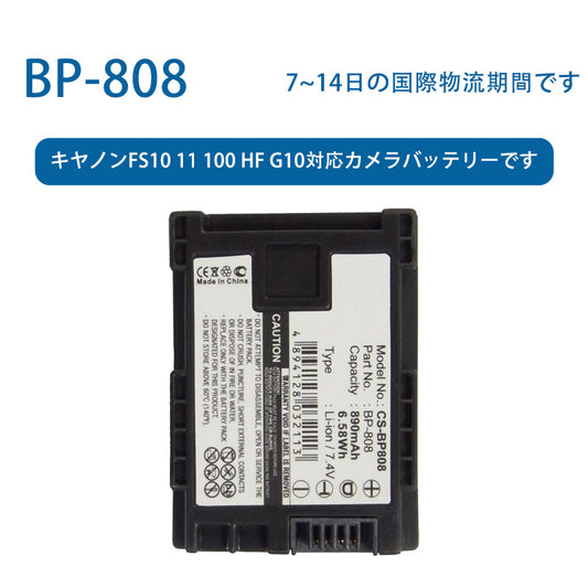 BP-808ため キヤノンFS10 11 100 HF G10カメラバッテリーです 7.4V 890mAh Li-ionバッテリー TLALOC ENERGY