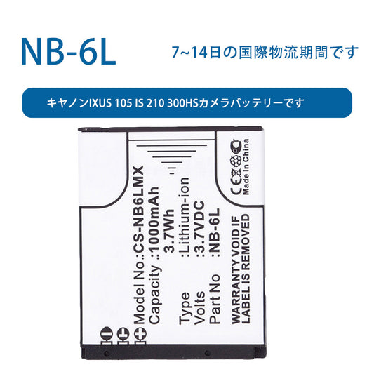 NB-6Lため キヤノンIXUS 105 IS 210 300HSカメラバッテリー3.7V 1000mAh リチウムイオン電池 TLALOC ENERGY